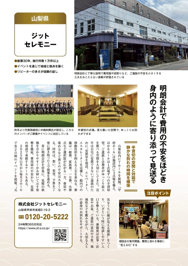 「週刊文春」の「文藝春秋社」が手掛ける初のお葬式ムック『大切な人のために後悔しないお葬式読本2026』に山梨県では唯一ジットセレモニーが選出されて特集されました!