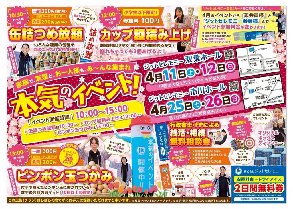 明日4/11(土)と明後日12(日)は『双葉ホール』にてイベント開催いたします!